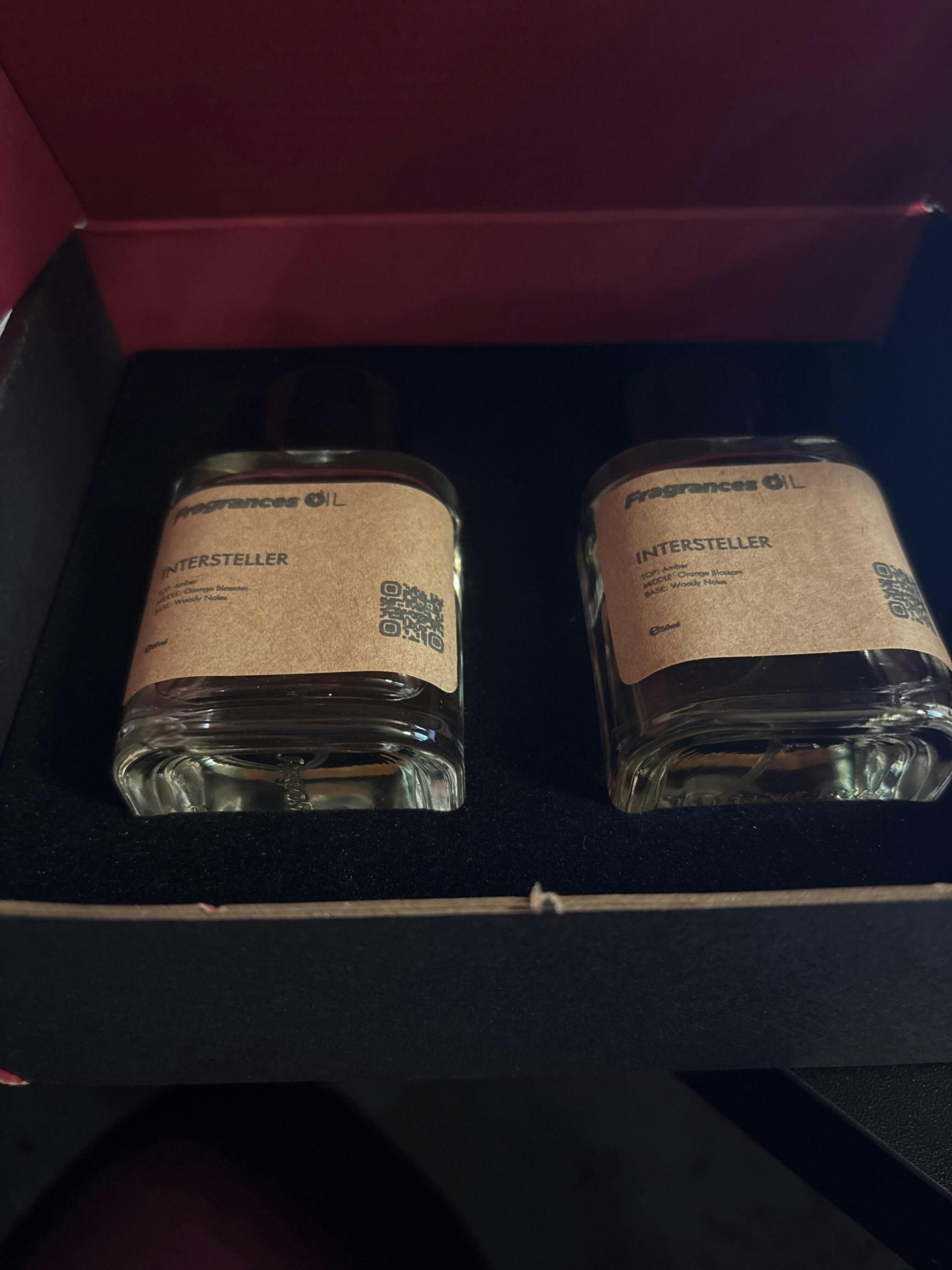 Intersteller (inspired by Louis Vuitton's Stellar Times) is a tribute to the often underutilized precious natural woody notes. Often considered as the most important player in the perfume industry. The result is incomparable when a fresh and sweet white floral note of orange blossom is introduced in the heart of the fragrance. Pair that with the magical nature of a sweet, resinous, cozy, and warm amber that is used as an opening note.